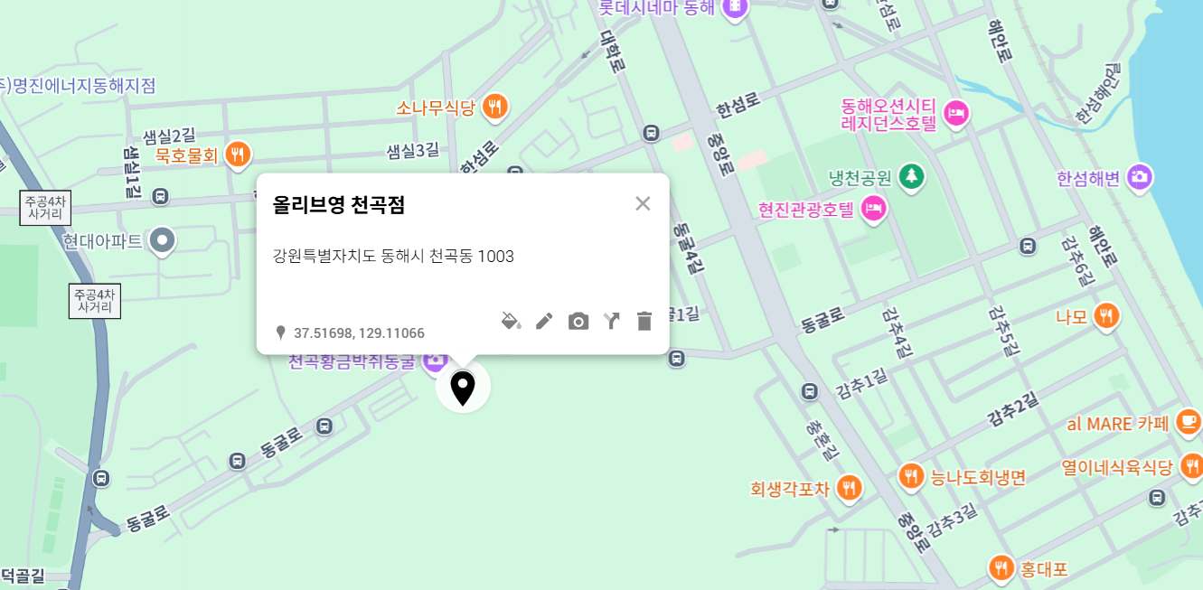 | 동해점 | 033-533-5290 | 강원특별자치도 동해시 천곡로 68 105호, 106호(천곡동, 현대코아) |