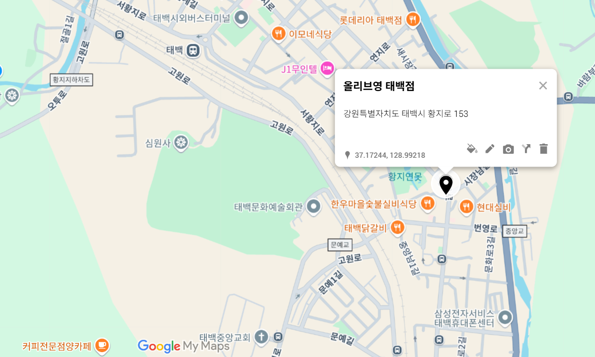 | 태백점 | 033-553-2747 | 강원특별자치도 태백시 황지로 151 102,103호 |